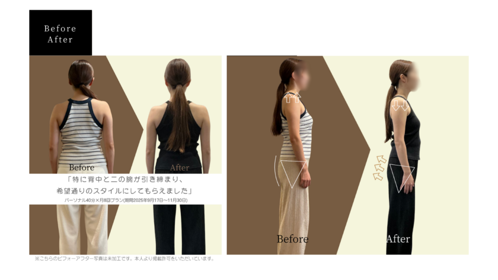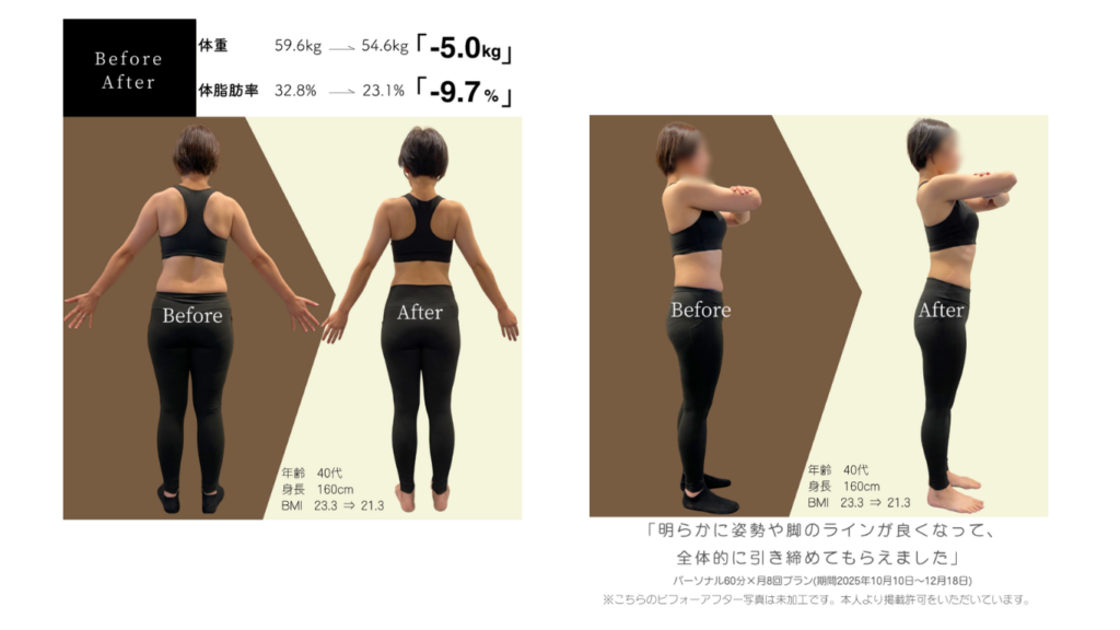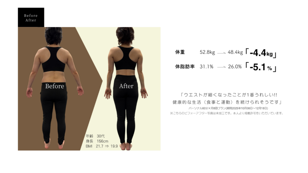 個人差がありますが、根本的な体の変化には時間が必要だと考えています。特に体組成や血液検査結果などの改善に関しては、継続的なトレーニングと適切な生活習慣が必要です。初めは難しいと感じるかもしれませんが、運動初心者の方も含め無理なく楽しみながら続けられるプランを用意しています。